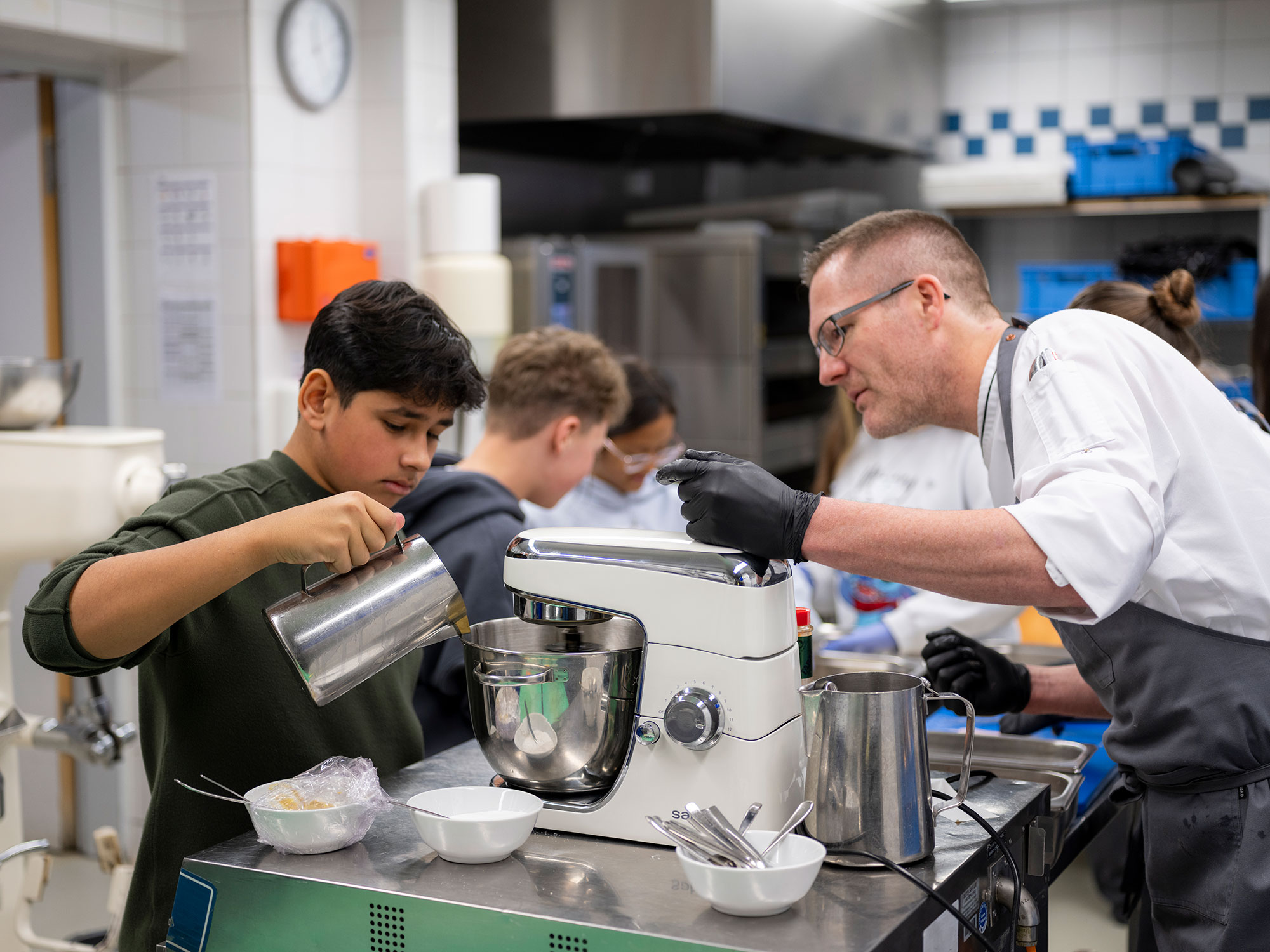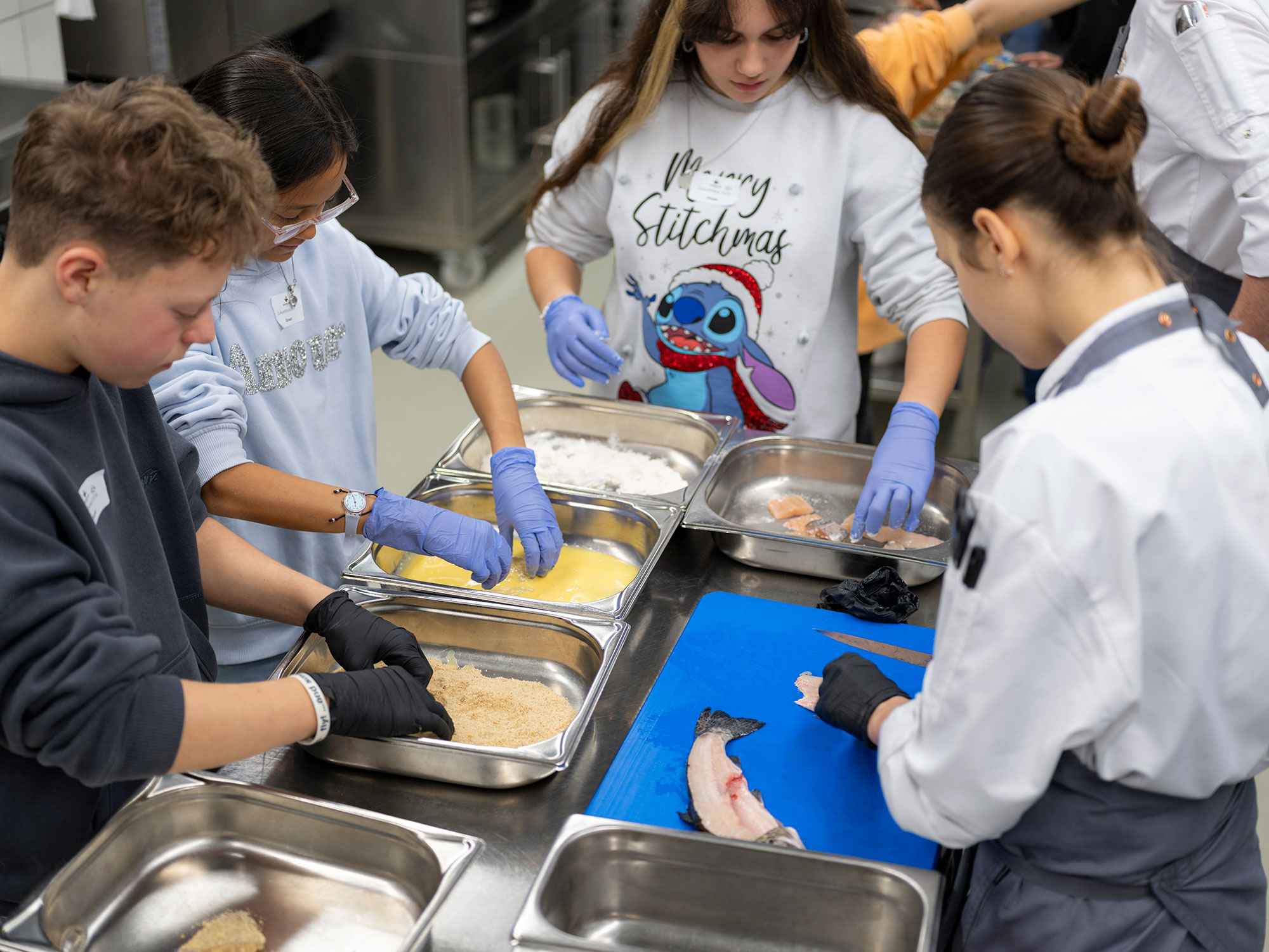 Organisiert und durchgeführt haben unsere Lernenden diesen Tag. Und sie haben sich eine Menge einfallen lassen: Wer findet den Fehler im Hotelzimmer? Da war ein Fingerabdruck auf dem Spiegel, ein aufgeklappter WC-Deckel und ein Kopfkissen am Fussende des Betts. In der Küche konnten die Kinder und Jugendlichen Muffins backen und dekorieren, aber auch Forellenfilets frittieren und die passende Mayonaise dazu rühren. Das gemeinsame Geniessen war der leckere Abschluss dieser «Arbeit».